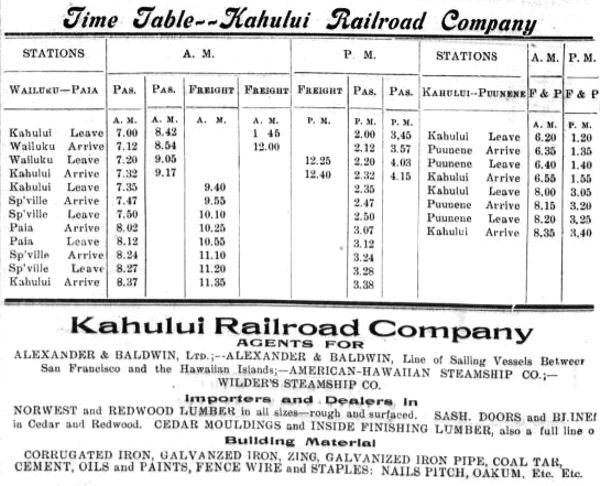 Kahului Railroad Company Schedule, 1906